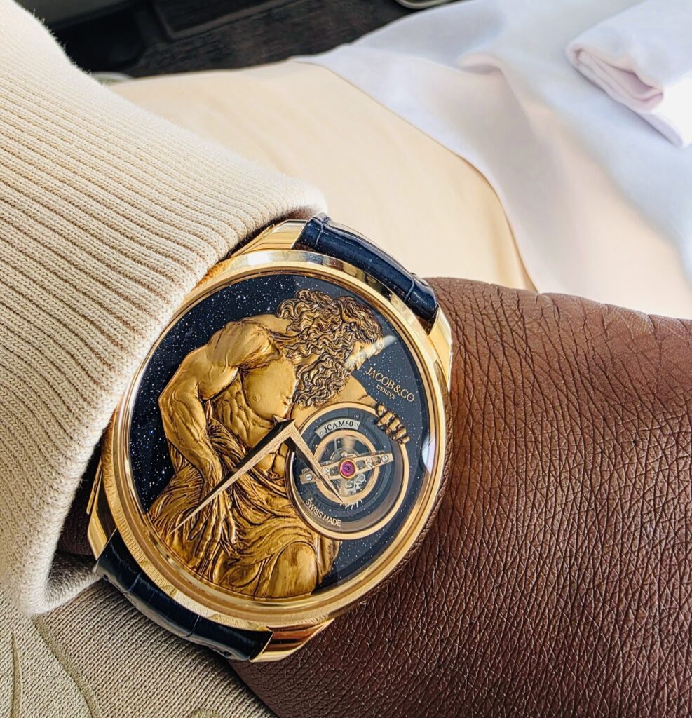 Sir Wicknell’s loyalty to Jacob & Co. runs deep, and the Astronomia Art Atlas might be the most poetic piece in his vault.