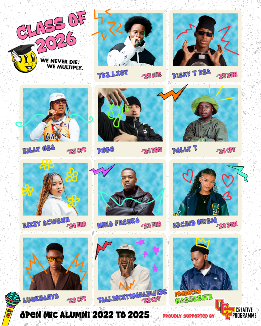The mixtape was born during a week-long UCF bootcamp in June 2025, where Open Mic alumni met for the first time to create what the programme believes is the kind of hip-hop South Africa needs right now — fearless, experimental and rooted in authentic storytelling.