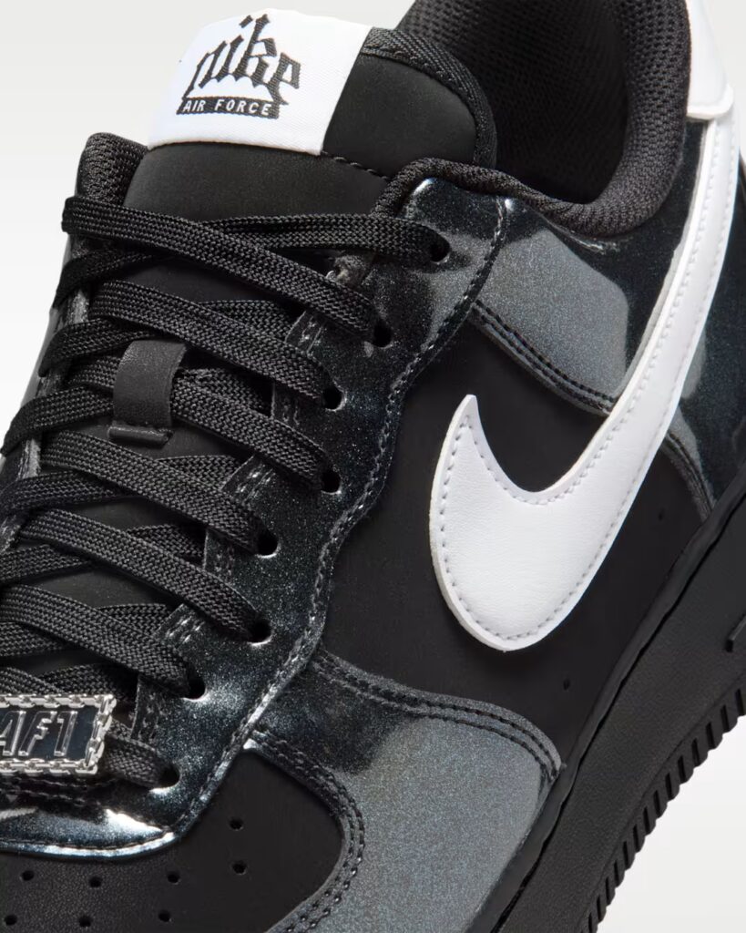 What really sets this LV8 apart are the details. The shiny black finishes give the sneaker a premium, almost luxury feel. The AF1 lace dubrae adds just the right amount of bling, making the flex subtle but unmistakable. A refreshed Nike font on the tongue introduces a modern twist, while the all-black base with white logo hits keeps the balance clean and commanding. Every element feels considered — nothing is random.